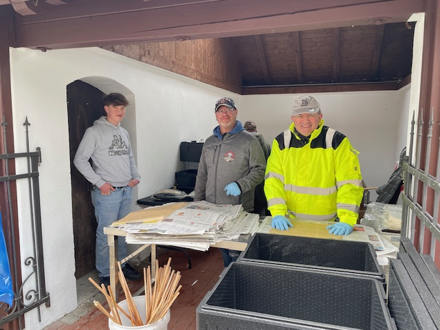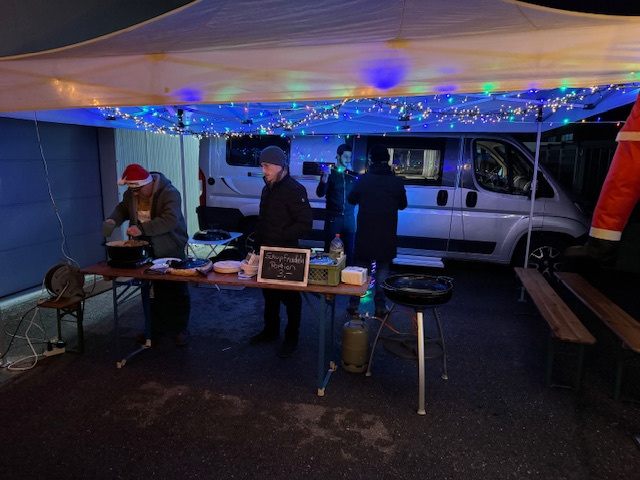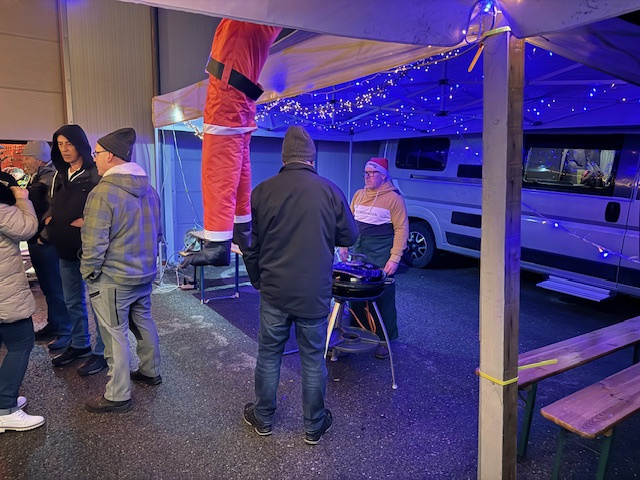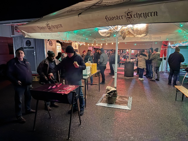 Weihnachten 2025 haben die Natur- und Angelfreunde Lechfeld e.V. Ihre Feier weiter aufgepeppt. Am 06.12.2025 luden wir alle Mitglieder und die es noch werden wollten zu unserem Weihnachtsgrillabend ein. Neben veganen Angeboten, welche vom Wolfram zu Hause vorbereitet und vor Ort frisch zubereitet wurden, stand auch der Joe wieder am Grill (dieses Jahr mit einem riesigen Regenschirm). Unermüdlich versorgten die beiden unsere Gäste mit Speisen. Neu in unserem kulinarischen Angebot waren die süssen Pie´s von unseren Nachbarn Benton&Horris, die ebenfalls unsere Gäste waren. Im Getränkewagen schenkten die Kristin und die Uschi Punsch, Glühwein und andere Getränke aus. Im Warmen stellten wir eine italienische Ape von Italo Bee mit Warmgetränken wie Kaffee oder Cappuccino zur Verfügung.