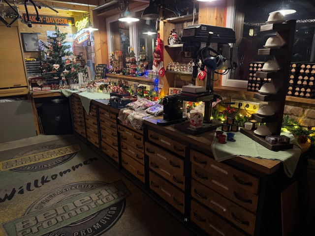 Als weiteres Highlight präsentierten wir erstmals unseren kleinen Weihnachtsmarkt. Auf einer Werkbanklänge von 7m gab es ein umfangreiches Sortiment an Baumanhängern, Figürchen und vieles mehr - alles was das Weihnachtsherz begehrt.Der Aufbau der Veranstaltung dauerte diesmal 2 Tage. Vielen Dank an dieser Stelle an alle Helfer, besonders an Nazir von NK Autowelt GmbH der mir die ganze Zeit nicht von der Seite wich. Ich bin gespannt was uns nächstes Jahr einfällt. Habt Ihr Ideen schreibt uns, wir freuen uns darauf.