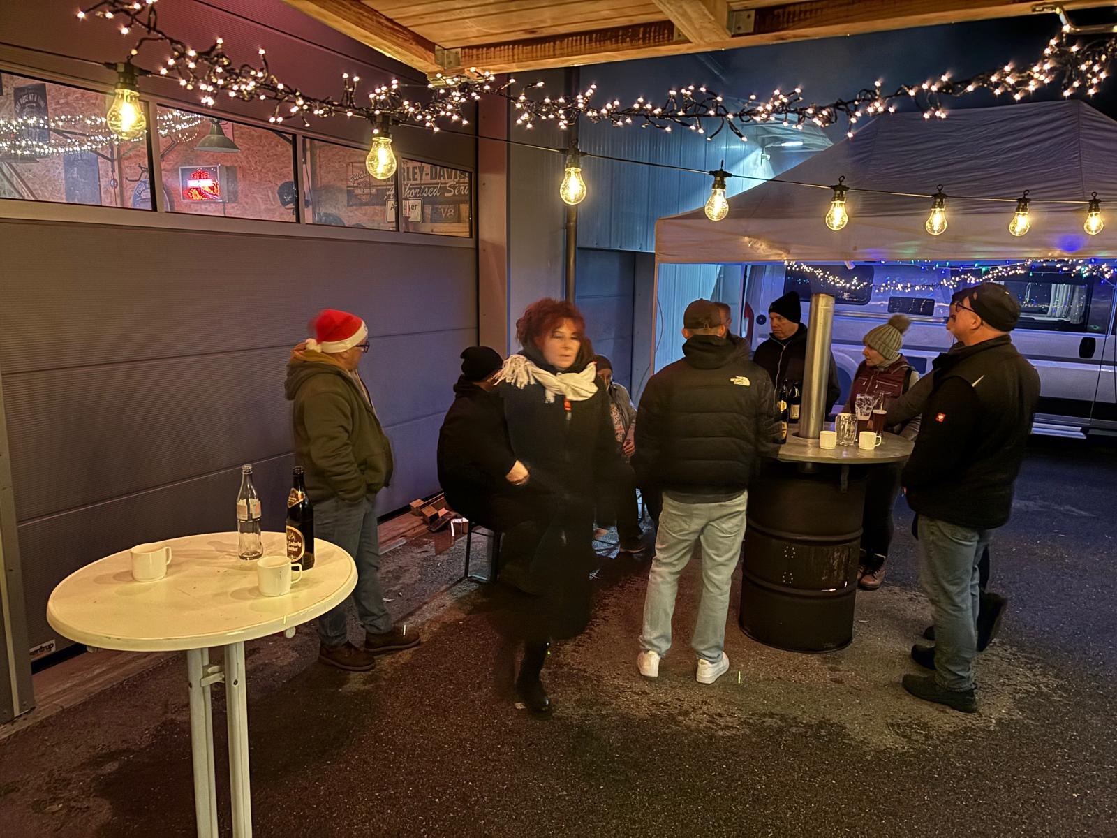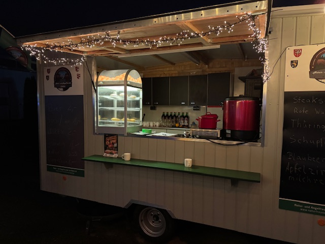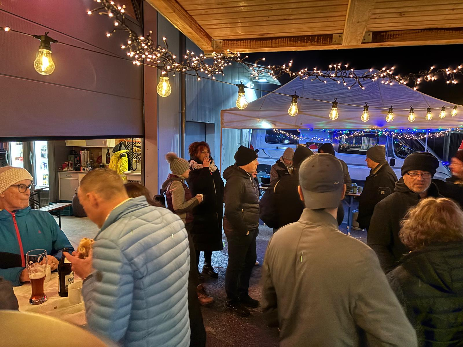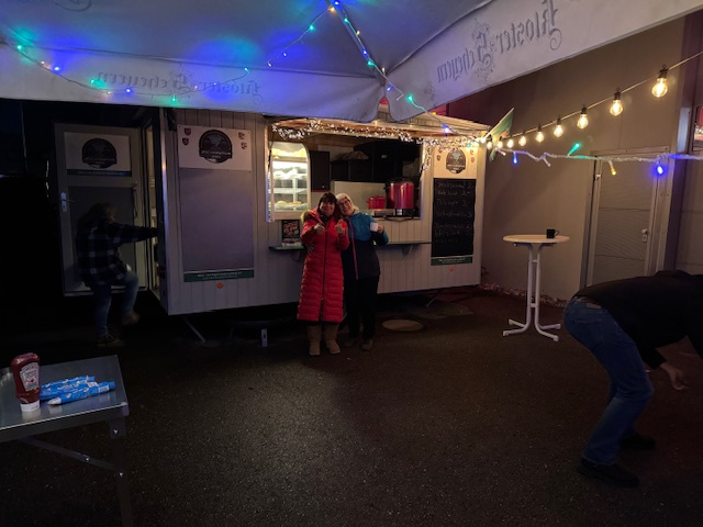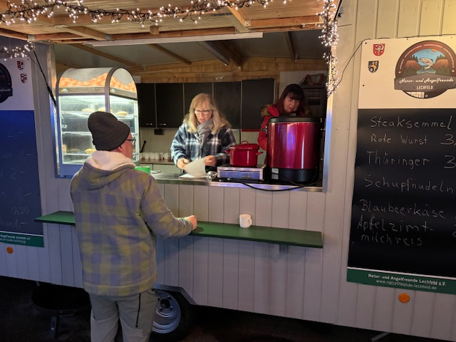 Weihnachten 2025 haben die Natur- und Angelfreunde Lechfeld e.V. Ihre Feier weiter aufgepeppt. Am 06.12.2025 luden wir alle Mitglieder und die es noch werden wollten zu unserem Weihnachtsgrillabend ein. Neben veganen Angeboten, welche vom Wolfram zu Hause vorbereitet und vor Ort frisch zubereitet wurden, stand auch der Joe wieder am Grill (dieses Jahr mit einem riesigen Regenschirm). Unermüdlich versorgten die beiden unsere Gäste mit Speisen. Neu in unserem kulinarischen Angebot waren die süssen Pie´s von unseren Nachbarn Benton&Horris, die ebenfalls unsere Gäste waren. Im Getränkewagen schenkten die Kristin und die Uschi Punsch, Glühwein und andere Getränke aus. Im Warmen stellten wir eine italienische Ape von Italo Bee mit Warmgetränken wie Kaffee oder Cappuccino zur Verfügung.